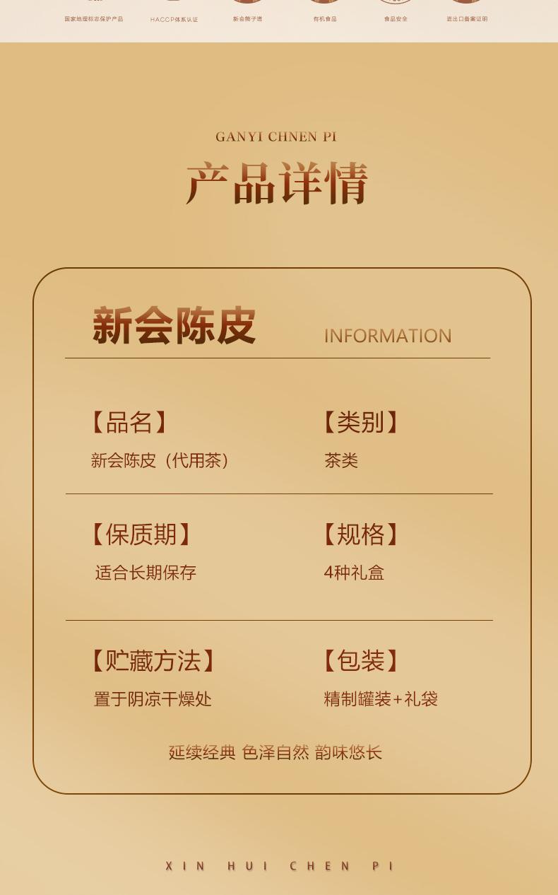 【呼家楼】侨乡臻选金玉满堂新会陈皮梅江6年陈皮250g/罐